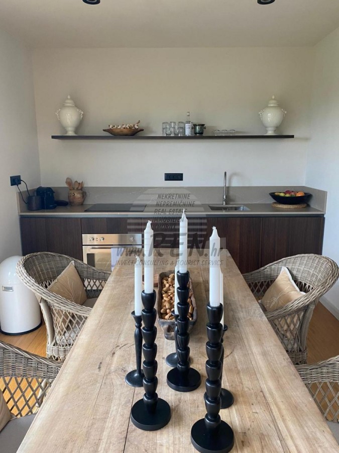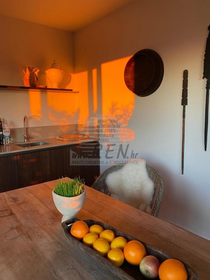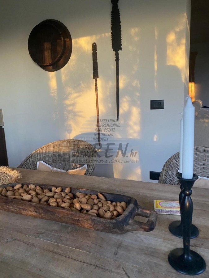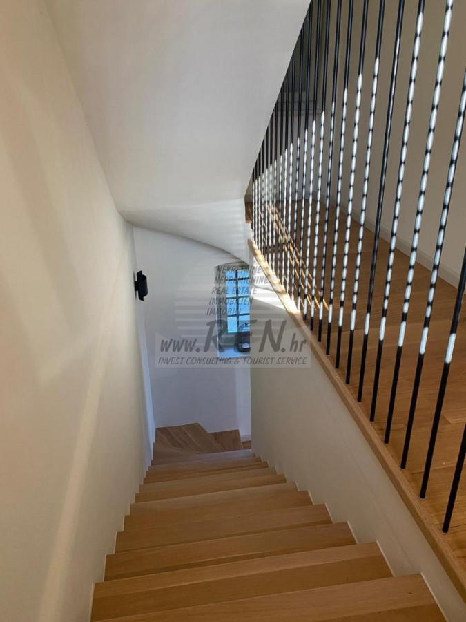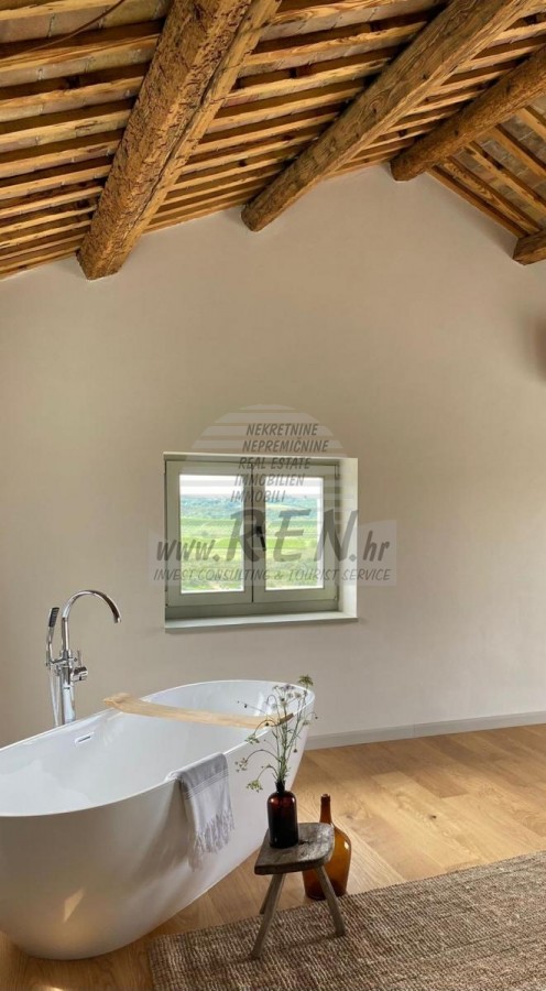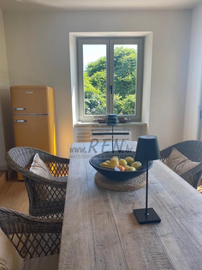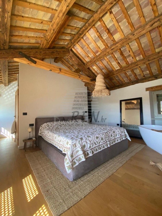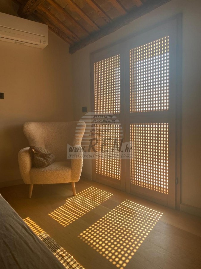 Ein luxuriöses Steinhaus mit einer der schönsten Aussichten Istriens befindet sich in einer ruhigen und kleinen Umgebung nahe dem Zentrum der Stadt Buje. Das Anwesen wurde nach ökologischen Standards umgebaut, ausschließlich mit natürlichen Materialien wie Stein, Holz, der Garten ist ausschließlich mit einheimischen Pflanzen dekoriert, Aromen wie Lavendel, Rosmarin, Salbei, Oliven und Feigen, die den ganzen Tag über unglaubliche Düfte verbreiten . Das über 160 Jahre alte Steinhaus wurde mit viel Liebe zum Detail komplett renoviert und vereint seitdem modernen Wohnkomfort mit historischen Elementen, was dem Haus einen besonderen Charme verleiht. Das Haus verfügt über 3 Etagen auf 170m2 mit einem 85m2 großen Garten. Insgesamt gibt es 3 Schlafzimmer, 3 Badezimmer, WC, eine Einbauküche mit zufälliger Steinplatte und hochwertigen Geräten sowie ein Wohnzimmer mit Kamin. Die Böden bestehen aus Eichenholz und die Fenster sind doppelschichtig mit Holzsprossen (Massivholz) versehen.