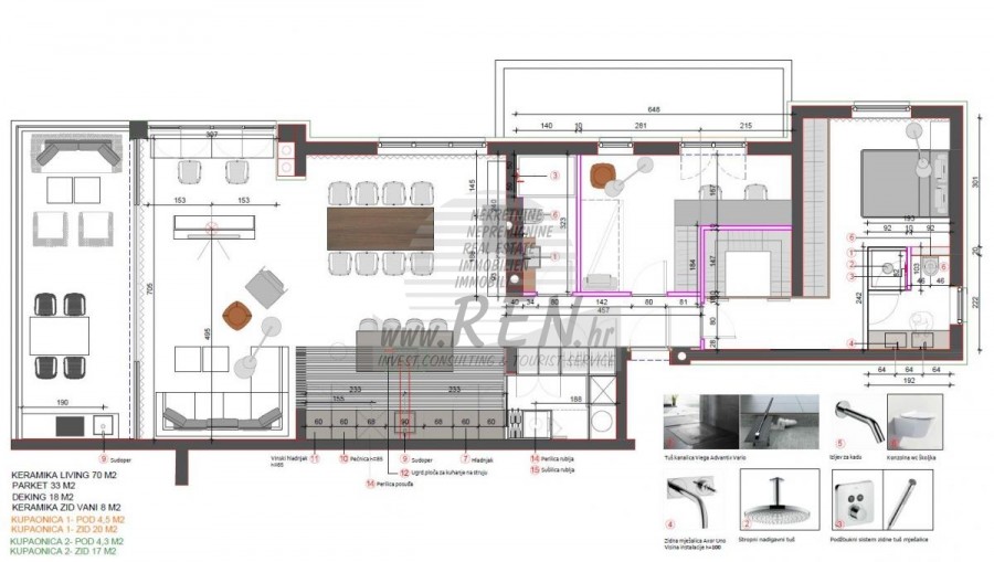 Die Badezimmer sind ebenfalls mit hochwertiger Keramik und Designerdetails ausgestattet.