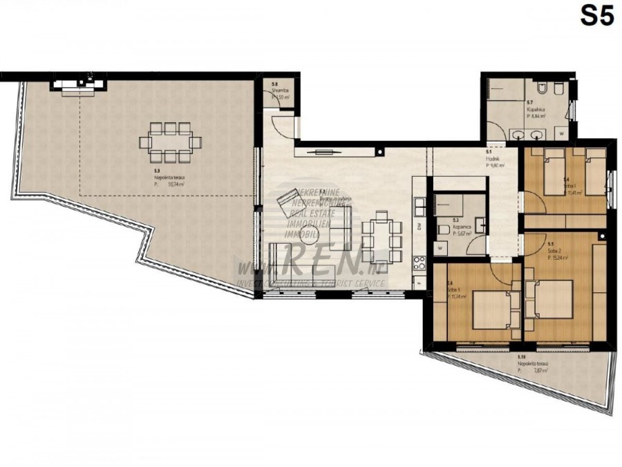 Sie verfügen über großzügige, nicht überdachte Terrassen mit ausreichend Platz zum Wohnen und Essen im Freien.