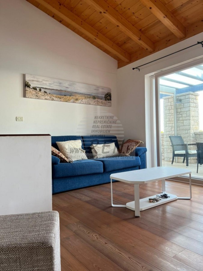 Wohnung haben insgesamt 120 m2 Die Wohnung befindet sich am Erdgeschoss und erste Stock, nur 1 min. (5m) vom Meer und schönen Stränden, 10 min. (8000m) sind Sie vom Stadtzentrum Novigrad entfernt. Die Wohnung besteht aus Küche/Wohnzimmer/Esszimmer, 2 Schlafzimmer, 2 Badezimmer, 2 Terrasse. Die Wohnung ist luxuriös ausgestattet, Klimaanlage, Parkplatz, Keller, Blick auf das Meer.